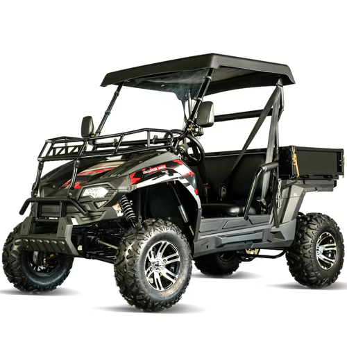 The TrailMaster Challenger 200U with a 169cc GY6 engine is a new model with a Large 27.5”X45.3”X93.5” dump bed with max load 165lbs, flips down 32 degrees. This aggressive Challenger has a new gear ratio set up which offers maximum low-end torque.