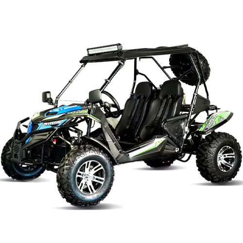 A new breed of UTV/Go-kart has arrived! True to its namesake, the Cheetah 200E (EFI) is sleek, powerful, fast and agile with the power plant, drivetrain, suspension of a high performance go-kart and the functionality of a utility vehicle. The Cheetah 200E is an upgrade from our popular Cheetah 150, now with a bigger 169cc GY6 engine equipped with EFI. With fuel injection, users don’t need to worry about starting in cold weather or at high altitudes; furthermore, users don’t need to fix or replace carburetors after periods of inactivity with the unit.Extra-long, independent front swing arms, a double ball joint, articulating rear suspension and ample ground clearance lets you glide over the roughest terrain and performing like independent suspension making it much harder to flip over. Adjustable high back bucket seats, and adjustable steering wheel will accommodate all shapes, sizes and skill level of the wild animal tamers in your family.