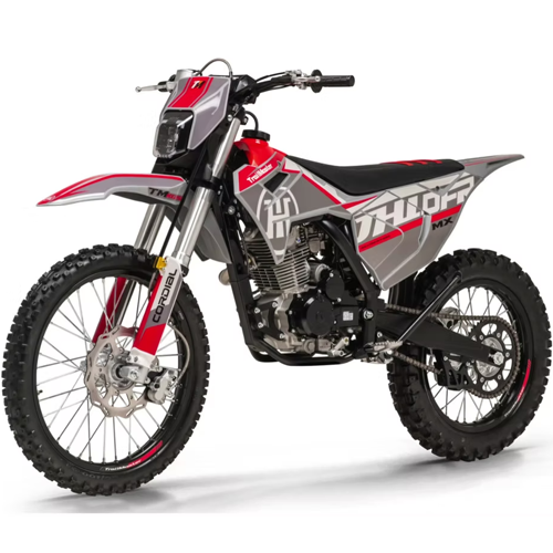 Trailmaster cooperating with JHL Offroad introduces The MX250, a premium PRO-Series mid size dirt bike. It has both a kick start and a “ELECTRIC START” to start a high performance extremely reliable Zhongshen 223cc 4 stroke 12hp engine with a seat height of 35.4”and a slim weight of 266lbs. It is available in red, blue, and green colors. The MX250 features a 5 speed manual transmission with front and rear disc brakes, and inverted front shock. This is sure to be a HOT seller! Additional standard premium items with our Pro-Series line include; Inverted front shock absorber, Nitrogen air gas rear shock absorber, performance stainless steel muffler, alloy foldable handle levers, alloy rims and hubs, quality front and rear disc brakes The bikes full on motocross ergonomics and race suspension system make handling feel natural and unforced, and help it navigate over any terrain. Electronic CDI ignition makes key and kick starting effortless, keeps the bike running smoothly in all gears and provides a broad, even power band.